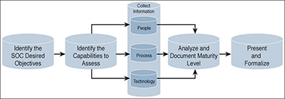 Figure 1 Assessment methodology. (For more information, see Chapter 3, "Assessing Security Operations Capabilities," in Security Operations Center: Building, Operating, and Maintaining Your SOC.)